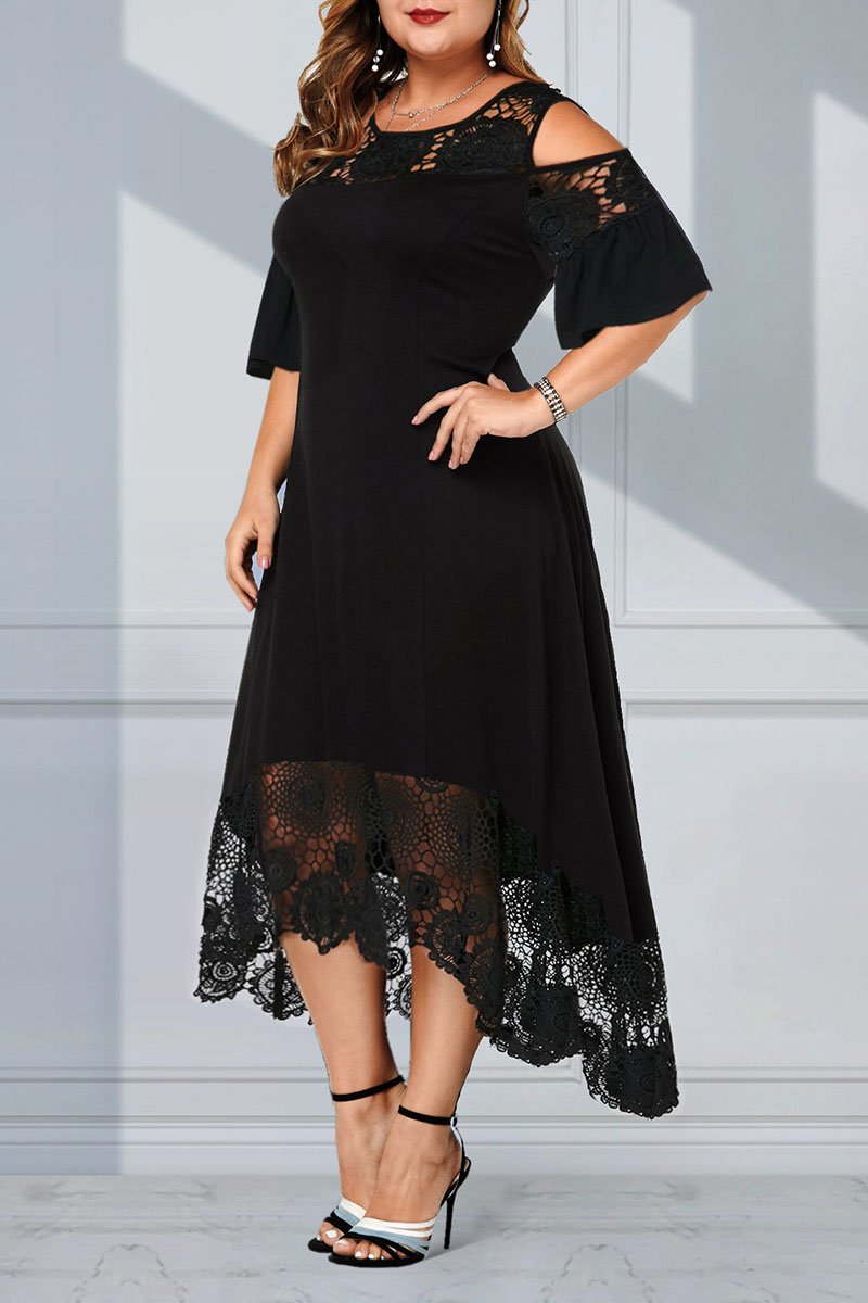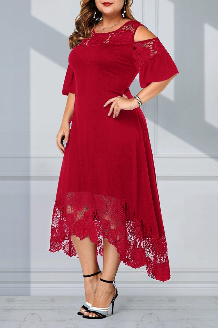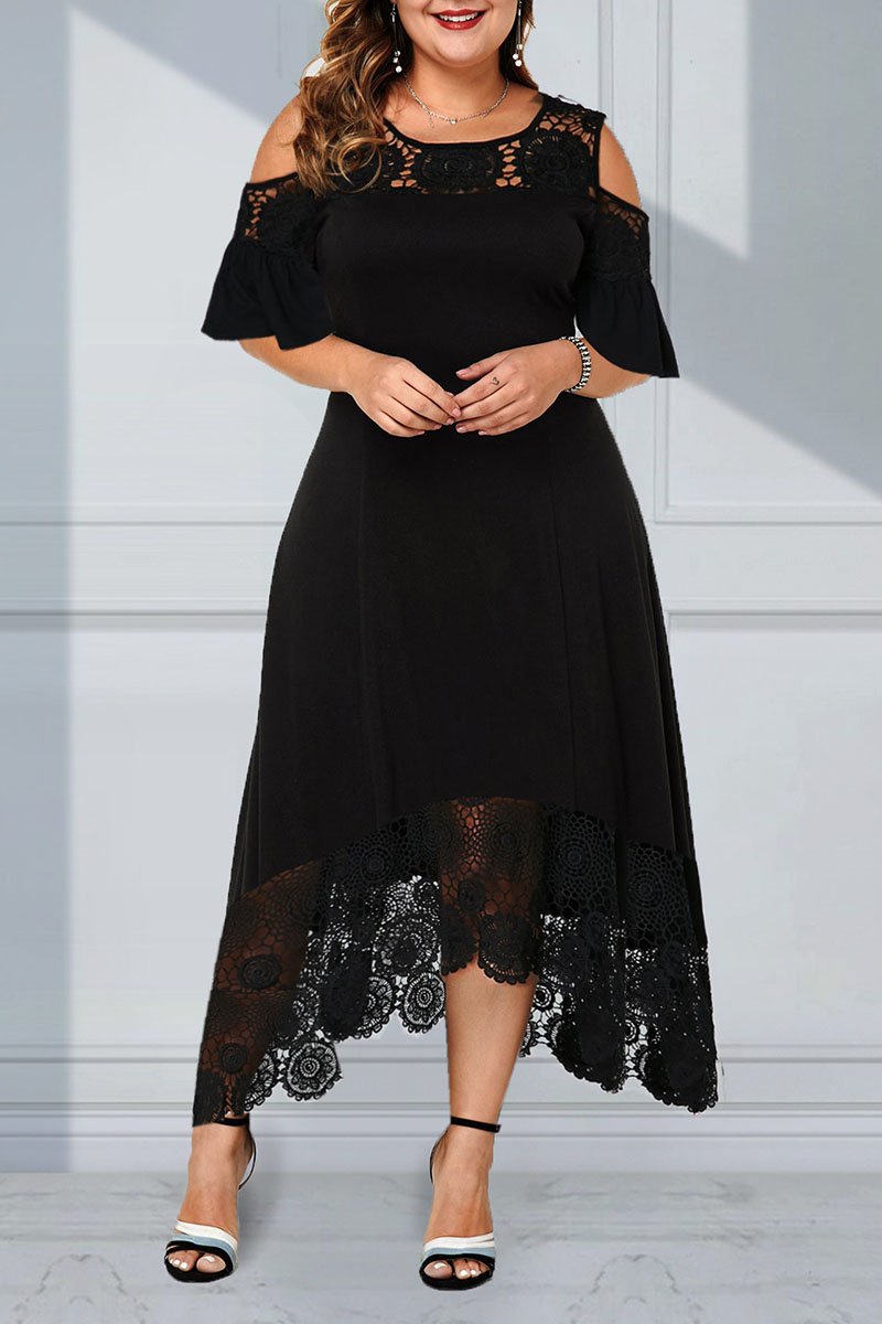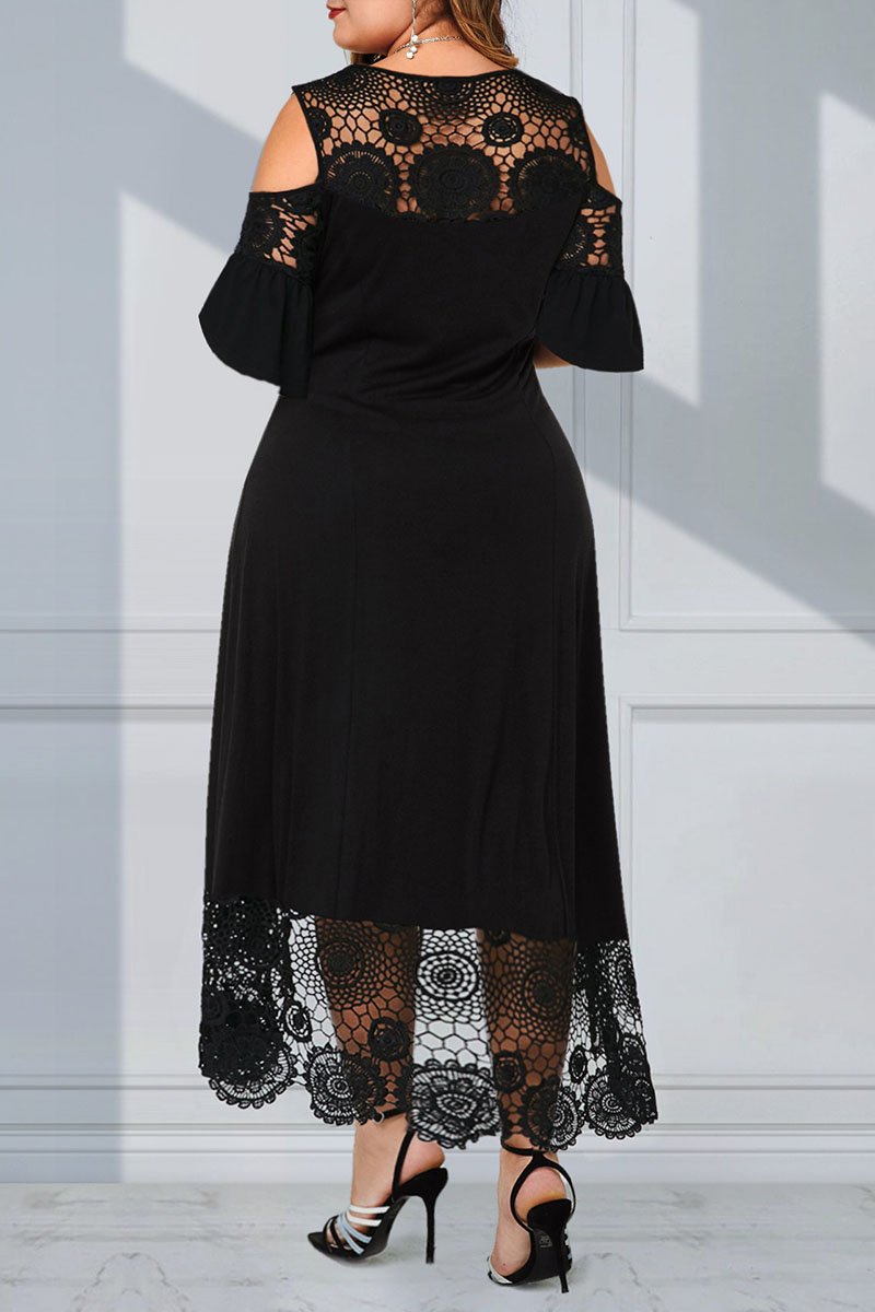 Nagy csipke hosszú ruha csipkevarrással, hosszú váll